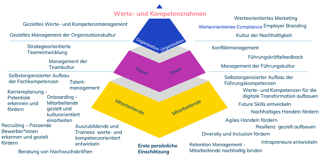 Auf dem Fundament Werte- und Kompetenzerfassung kann die gesamte Breite des gezielten Werte- und Kompetenzmanagements ermöglicht werden.