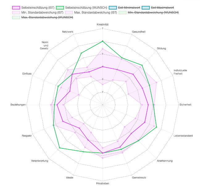 Daraus ergibt sich ein aggregiertes Bild der organisationalen Werte oder Kompetenzen.