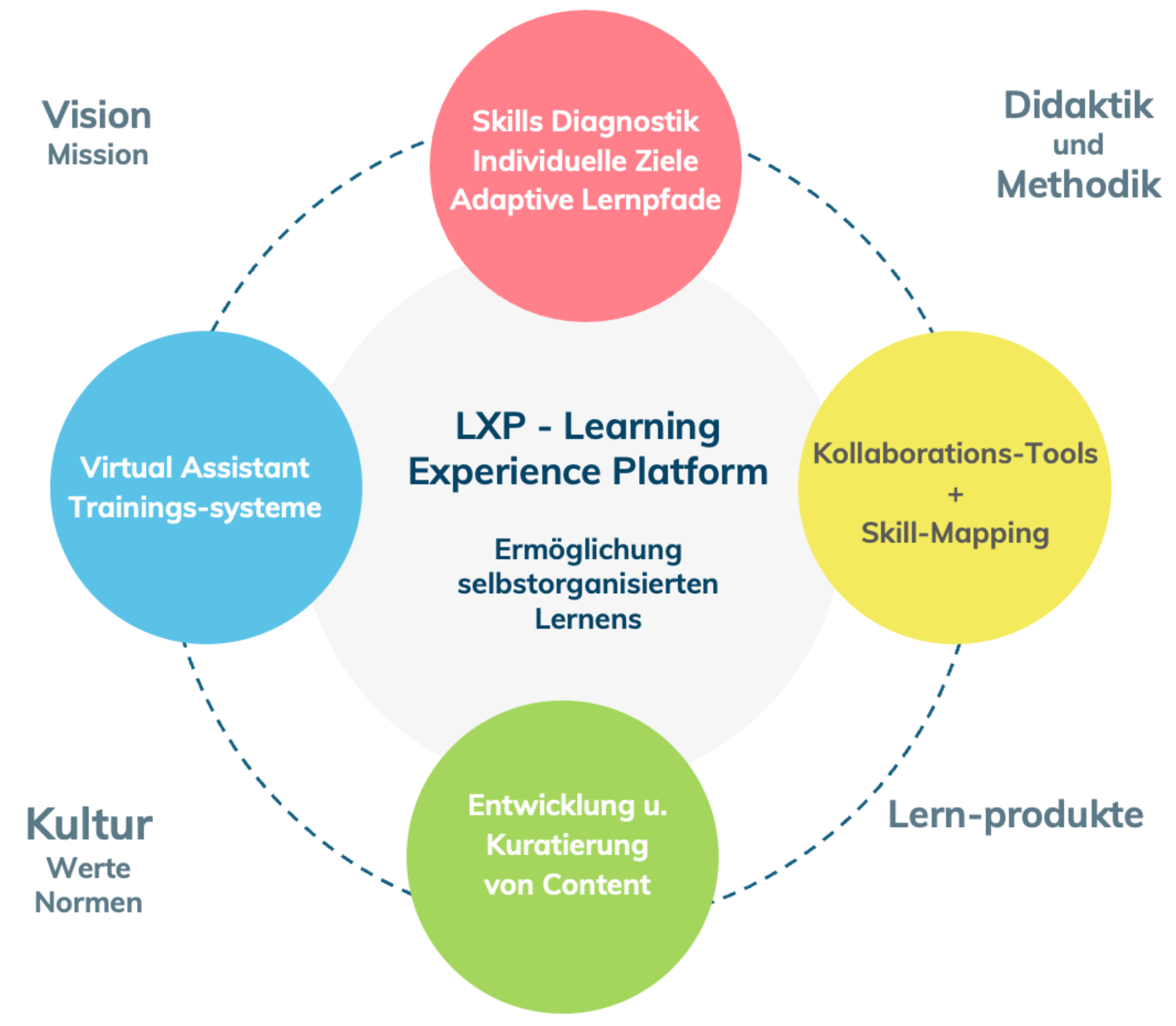 Learning Experience Platforms sind digitale Ermöglichungsräume, mit denen die Lernprozesse der Mitarbeitenden im Prozess der Arbeit und in Praxisprojektenaus deren Blickwinkel ermöglicht werden.