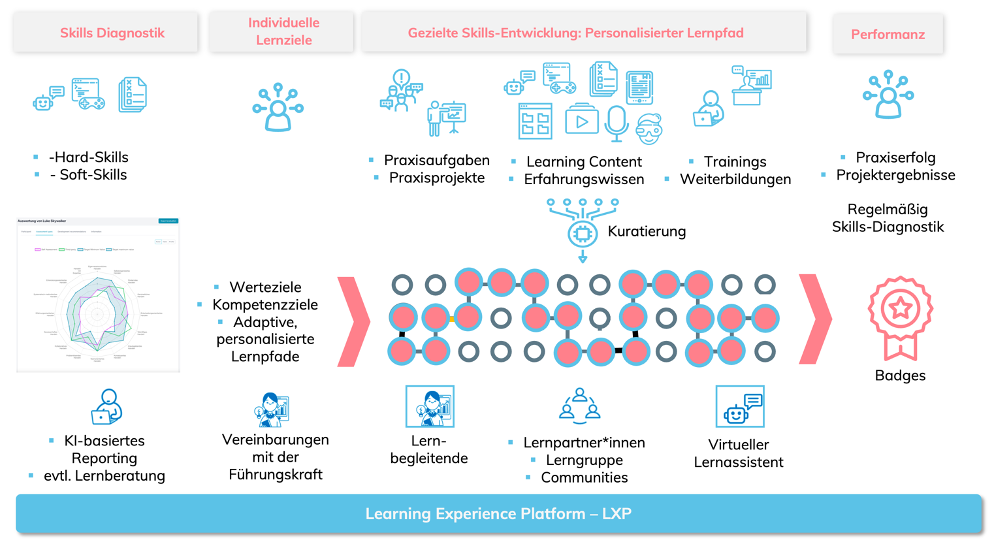 Die Mitarbeitenden organisieren nunmehr ihre Werte- und Kompetenzentwicklung selbst und in eigener Verantwortung mit Unterstützung ihres Netzwerkes (Community of Practice). Dabei nutzen sie alle Lernformate und Informationsquellen, aber auch Kommunikations- und Kollaborationsformen im Ermöglichungsraum. Ihre Lernprozesse werden bei Bedarf durch Virtuelle Lernassistentn, von Lernbegleitenden und der jeweiligen Führungskraft unterstützt. Regelmäßige Workshops bieten die Möglichkeit, den Lernprozess zu reflektieren und aktuelle Fragestellungen mit Kollegen zu diskutieren.