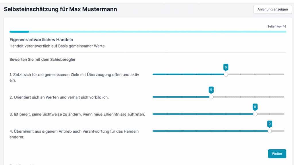- Personenbezogene Erfassung der Werte und Kompetenzen